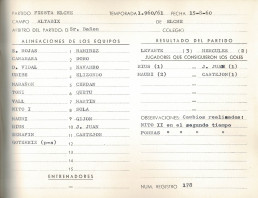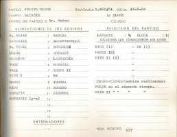 Junto a trofeo se conserva el acta del encuentro inaugural entre Elche CF y Levante UD. De igual forma, este documento certifica la epifanía de una competición que sigue viva más de seis décadas después.