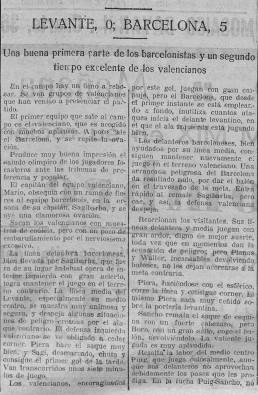 La crónica de El Mundo Deportivo singulariza la aparición de los equipiers del Levante en el Camp de Les Corts en las jornadas finales de febrero de 1926.