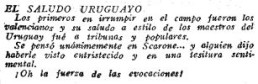 “Su salida al terreno de juego fue acogida con una ovación y ellos quisieron corresponder a la cortesía y hospitalidad catalana con unos hurras lanzados a la uruguaya”.